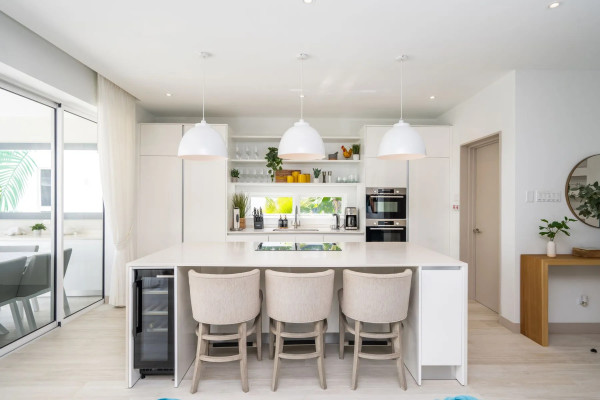 Discover serene island living at Villa Blanca, a newly built 4-bedroom, 4-bathroom architectural gem in the gated Porters Place community, St. James. Designed for seamless indoor-outdoor flow, this elegant villa features vibrant island-inspired furnishings and a private 20-foot courtyard pool surrounded by ample lounge seating.